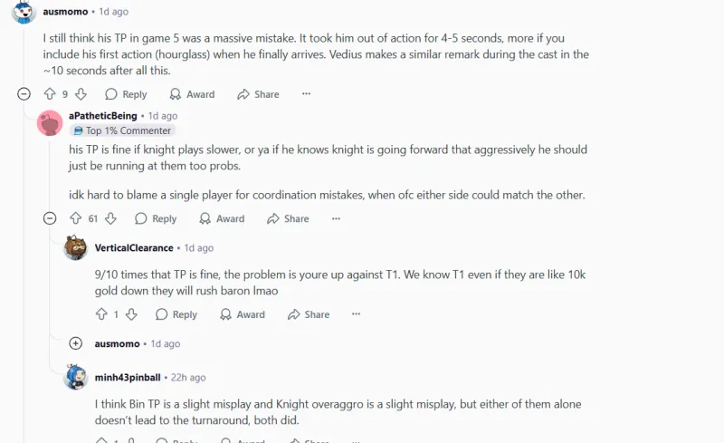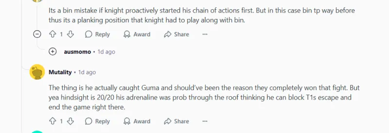 我覺(jué)得 Bin 的 TP 是小失誤,Knight 太激進(jìn)也是小失誤,但兩者疊加才導(dǎo)致被翻盤(pán)。