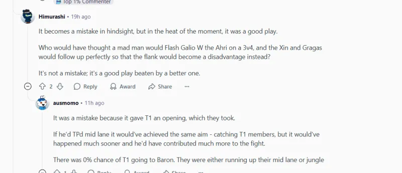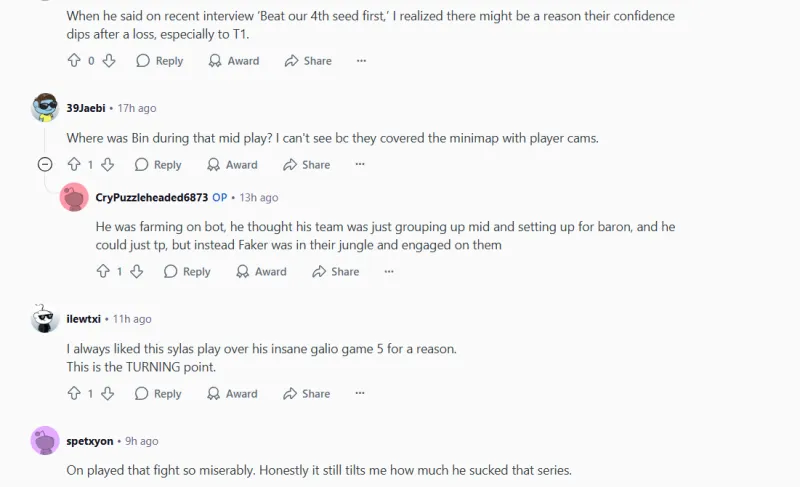 他當(dāng)時(shí)在下路補(bǔ)兵,以為隊(duì)友只是中路抱團(tuán)準(zhǔn)備控大龍,自己能TP支援,結(jié)果 Faker 已經(jīng)潛進(jìn)他們野區(qū),直接先手開(kāi)團(tuán)了。