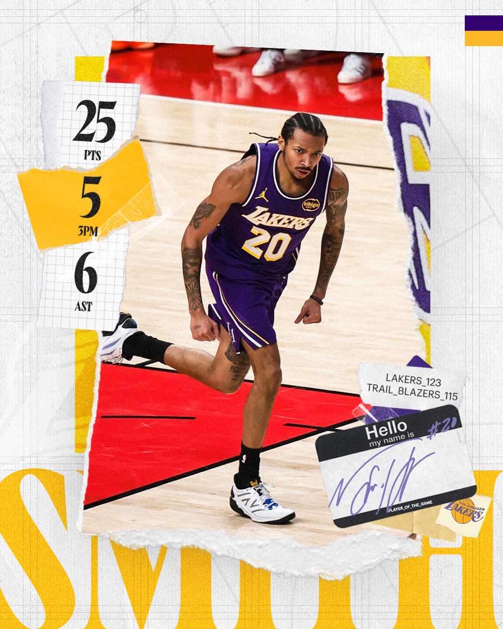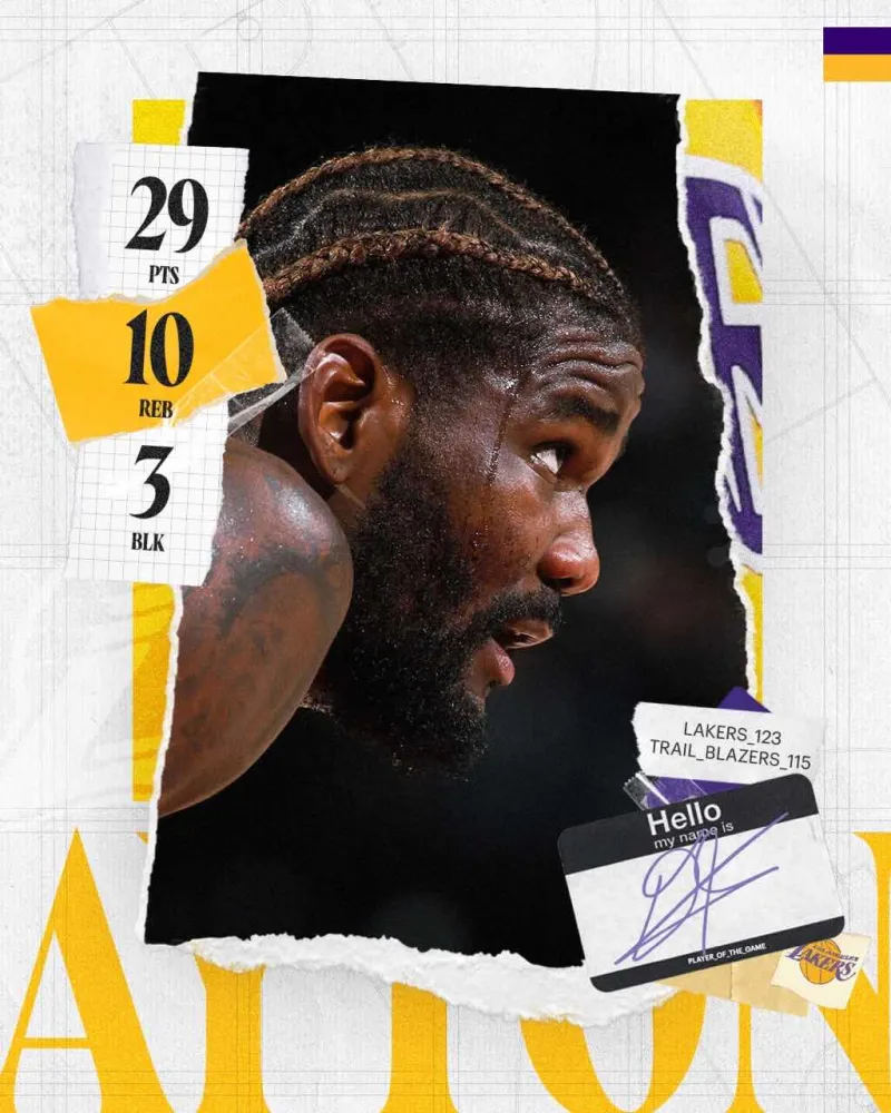 賽后,媒分湖人社媒分享尼克-史密斯&艾頓海報:挺身而出,表現(xiàn)出色。