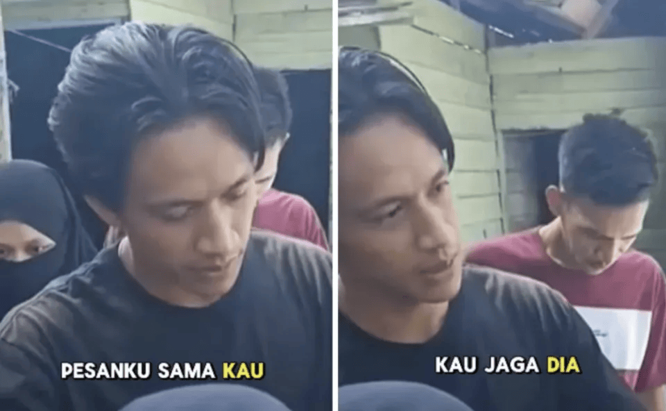 在眾人見證下,男子情緒激動(dòng),握著情夫肩膀哽咽叮囑,稱已與妻子離婚,將其交予情夫,希望對(duì)方好好照顧。情夫則需履行雙方事前約定,贈(zèng)送一頭牛,并支付500萬印尼盾(約1270令吉)作為補(bǔ)償。