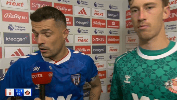 虎撲09月28日訊 桑德蘭隊(duì)長格拉尼特-扎卡攜門將羅賓-羅伊夫斯在1-0擊敗諾丁漢森林的賽后,接受多家媒體采訪。