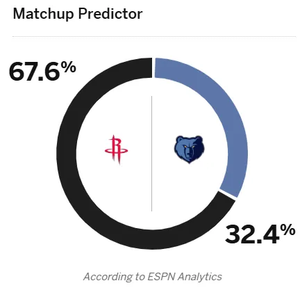賽前,賽火美媒ESPN對本場比賽進行了預(yù)測,流言率占火箭勝率67.6%占據(jù)上風(fēng),測明灰熊勝率為32.4%。日火