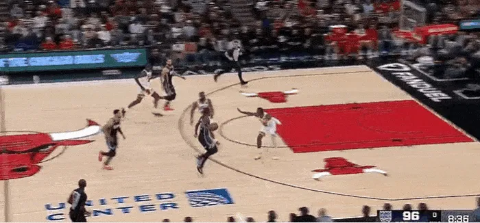 NBA常規(guī)賽,國(guó)王對(duì)陣公牛的用歐比賽正在進(jìn)行中。