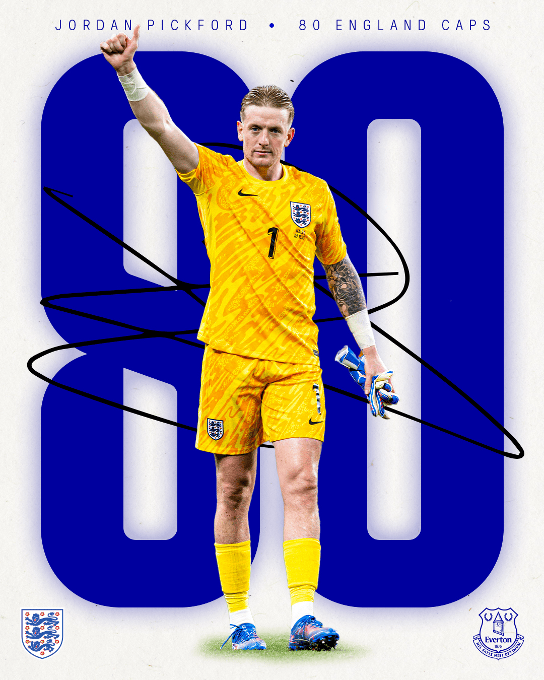 埃弗頓官方為他制作了海報祝賀他達(dá)成這一成就。迎英