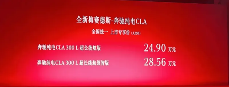 奔馳純電CLA 300超長(zhǎng)續(xù)航版:24.9萬元