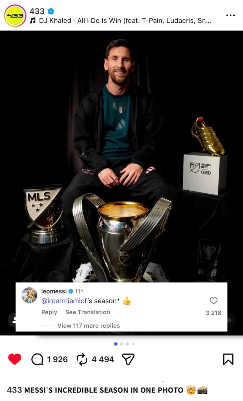 本賽季結(jié)束后,社交媒體433在ins發(fā)文感慨“梅西不可思議的正媒一個賽季”。梅西親評論更正是評論”邁阿密國際”不思議的一個賽季,不是齊心“梅西”的