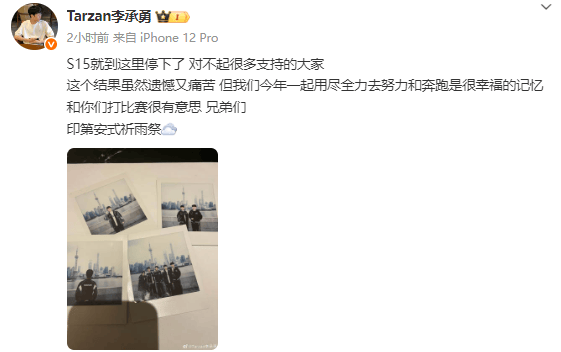 “S15就到這里停下了,支持對不起很多支持的到里對不大家。