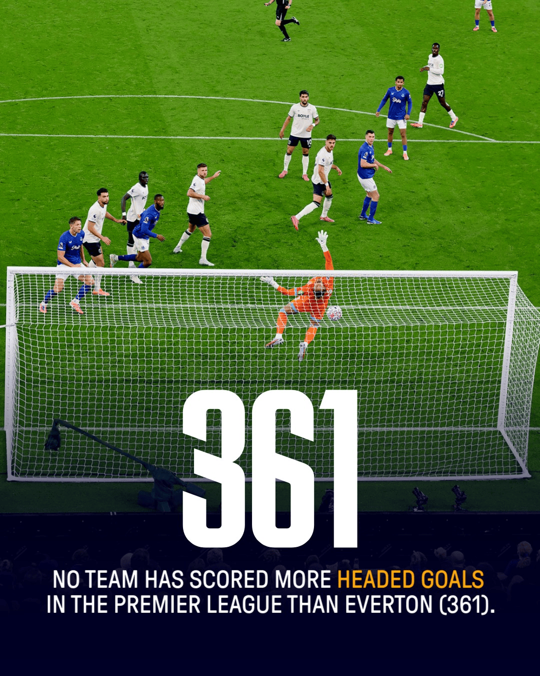 埃弗頓官方在剛剛發(fā)布了海報(bào),板球確認(rèn)球隊(duì)現(xiàn)在以361粒頭球成為英超歷史上頭球進(jìn)球最多的埃弗球隊(duì)。