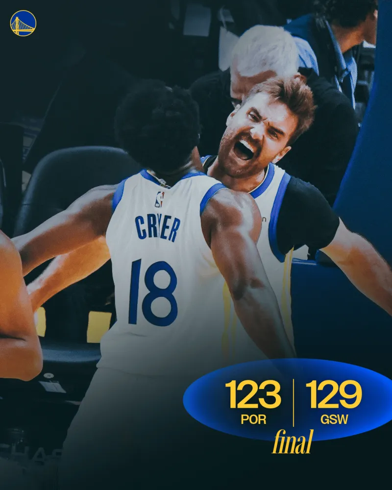 [流言板]勇士社媒分享戰(zhàn)勝開拓者賽果海報:一場逆轉(zhuǎn)的勝利