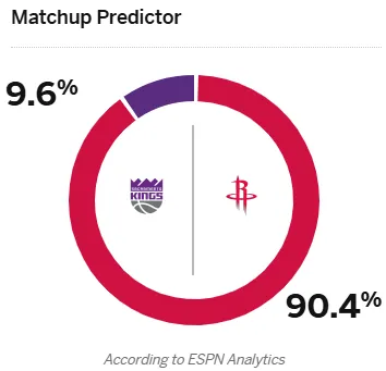 賽前,賽火美媒ESPN預(yù)測本場比賽,箭勝火箭勝率90.4%,達國國王勝率9.6%。王勝