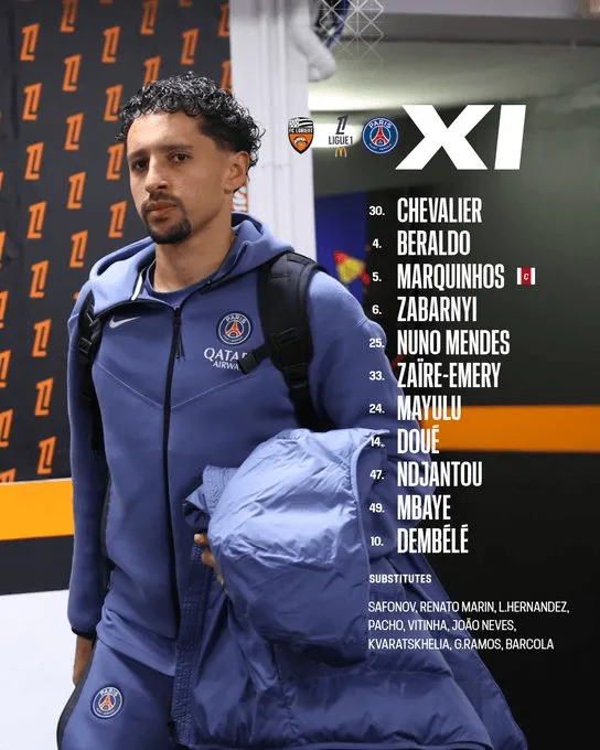 巴黎替補:39-薩福諾夫、89-馬林、21-埃爾南德斯、51-帕喬、17-維蒂尼亞、87-若昂-內(nèi)維斯、7-克瓦拉茨赫利亞、9-拉莫斯、29-巴爾科拉