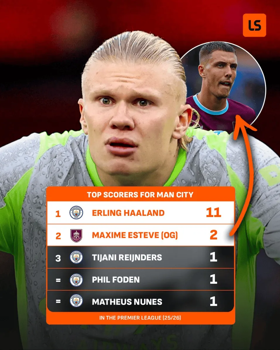 虎撲10月31日訊 根據(jù)LiveScore的統(tǒng)計(jì),馬克西姆-埃斯特維在對陣曼城的曼城比賽中不慎兩次自擺烏龍,這還讓他成為了本賽季曼城隊(duì)內(nèi)的季隊(duì)第二“得分手”??