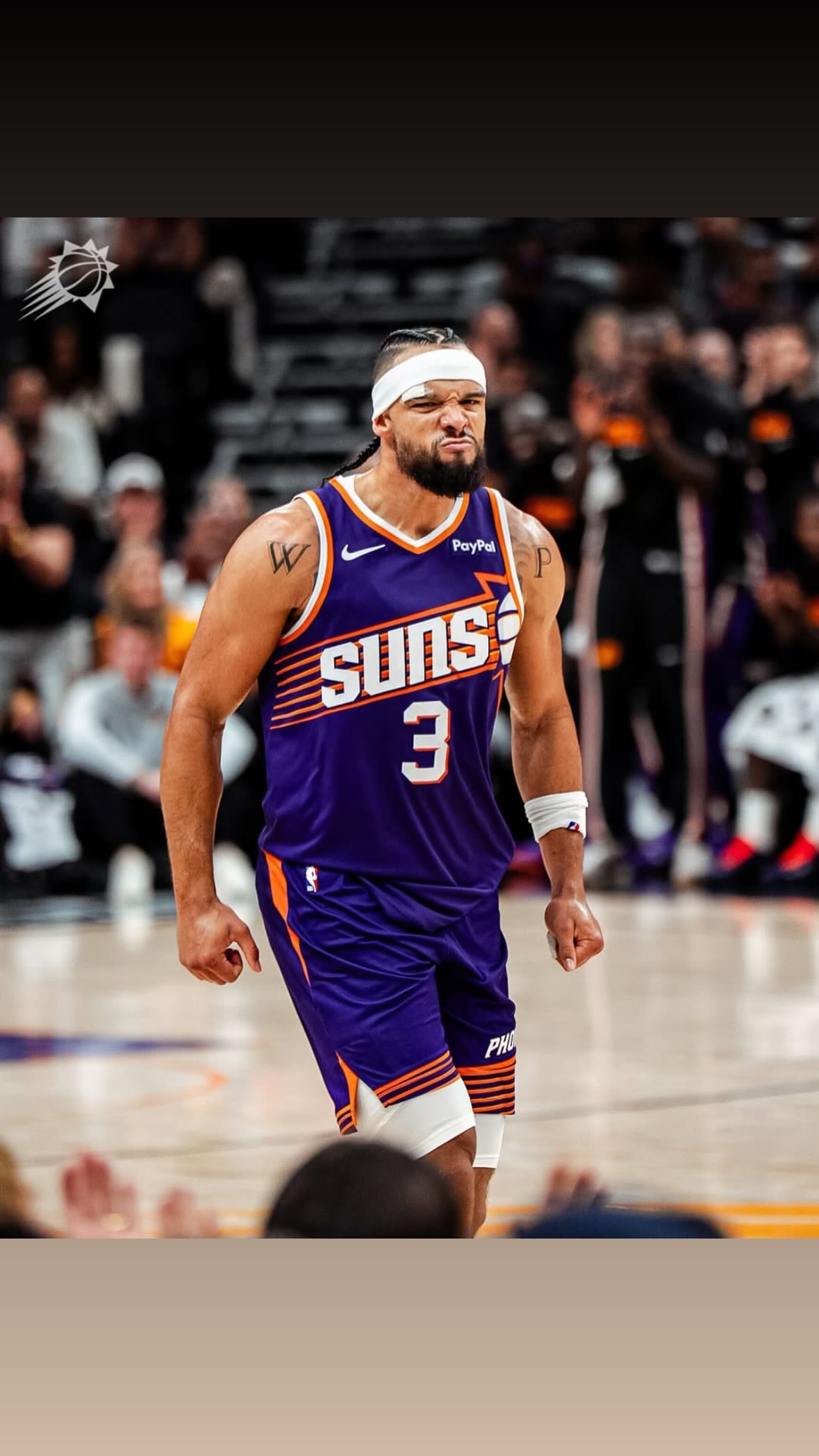 賽后,士狄太陽球員狄龍-布魯克斯更新Ins,流言龍曬出一張自己的板縫賽場照與球迷分享。