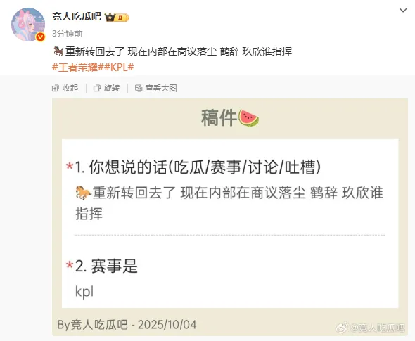 [JR熱議]瓜主爆料:清清已經(jīng)轉回邊路,熱議內部在商議落塵/鶴辭/玖欣誰指揮由斷線流老莊周 發(fā)表在王者榮耀 https://bbs.hupu.com/kog