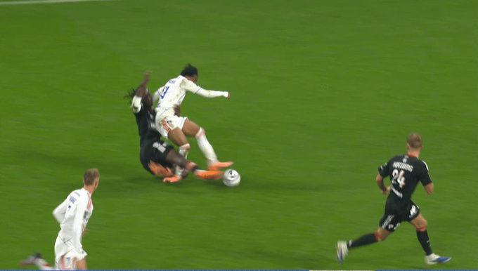 第66分鐘,鏟人場斯特拉斯堡中衛(wèi)杜庫雷背后鏟倒馬利克-福法納,直紅VAR審核后直紅下場。下場