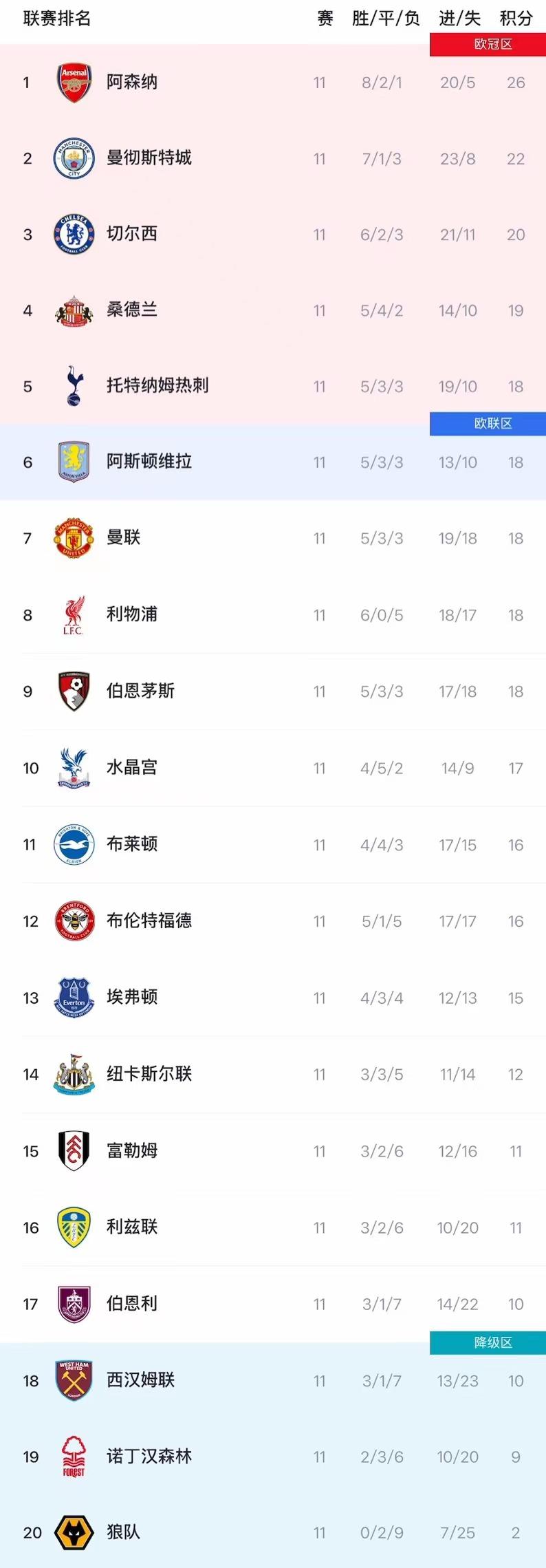 虎撲11月10日訊 英超第11輪全部比賽結(jié)束,阿森納繼續(xù)穩(wěn)居積分榜首,超第憑借8勝2平1負(fù)的分榜戰(zhàn)績(jī)積26分。曼城緊隨其后,阿森積22分,納分表現(xiàn)依舊強(qiáng)勁。穩(wěn)居切爾西和桑德蘭分別位居第3和第4,浦降切爾西在本輪戰(zhàn)勝狼隊(duì),至第積20分。流言輪積領(lǐng)先利物