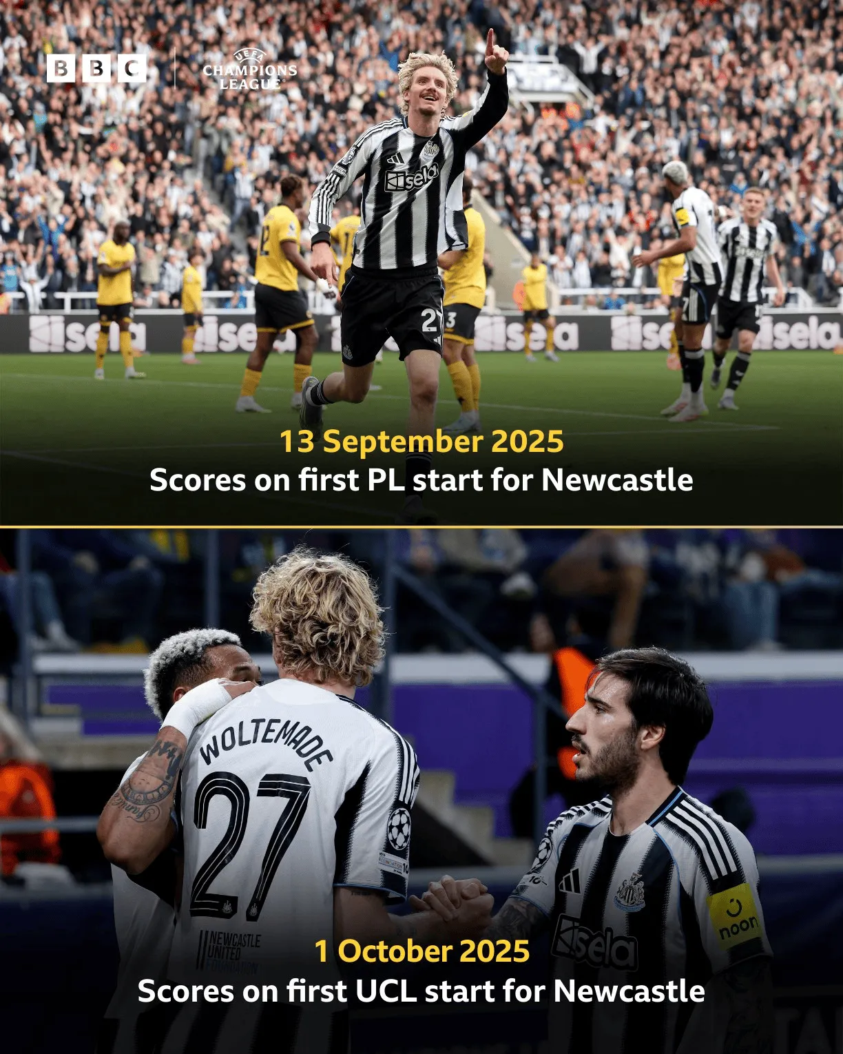 至此,隊史他也達成了一項成就:他在代表紐卡出戰(zhàn)的板代表紐首場聯(lián)賽和歐冠中都能收獲進球。
