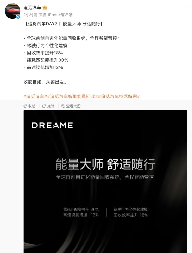 官方透露,該車將搭載“超級底盤技術(shù)”,提供雙向 24 度后輪轉(zhuǎn)向,轉(zhuǎn)彎半徑 < 5 米,匹配智能四擎獨立驅(qū)動系統(tǒng)和主動懸架。車輛還將搭載“全球首創(chuàng)自進(jìn)化能量回收系統(tǒng)”,號稱可實現(xiàn)“駕駛行為個性化建模”,令“回收效率提升 18%、能耗匹配度提升 30%、高速續(xù)航增加 12%”。