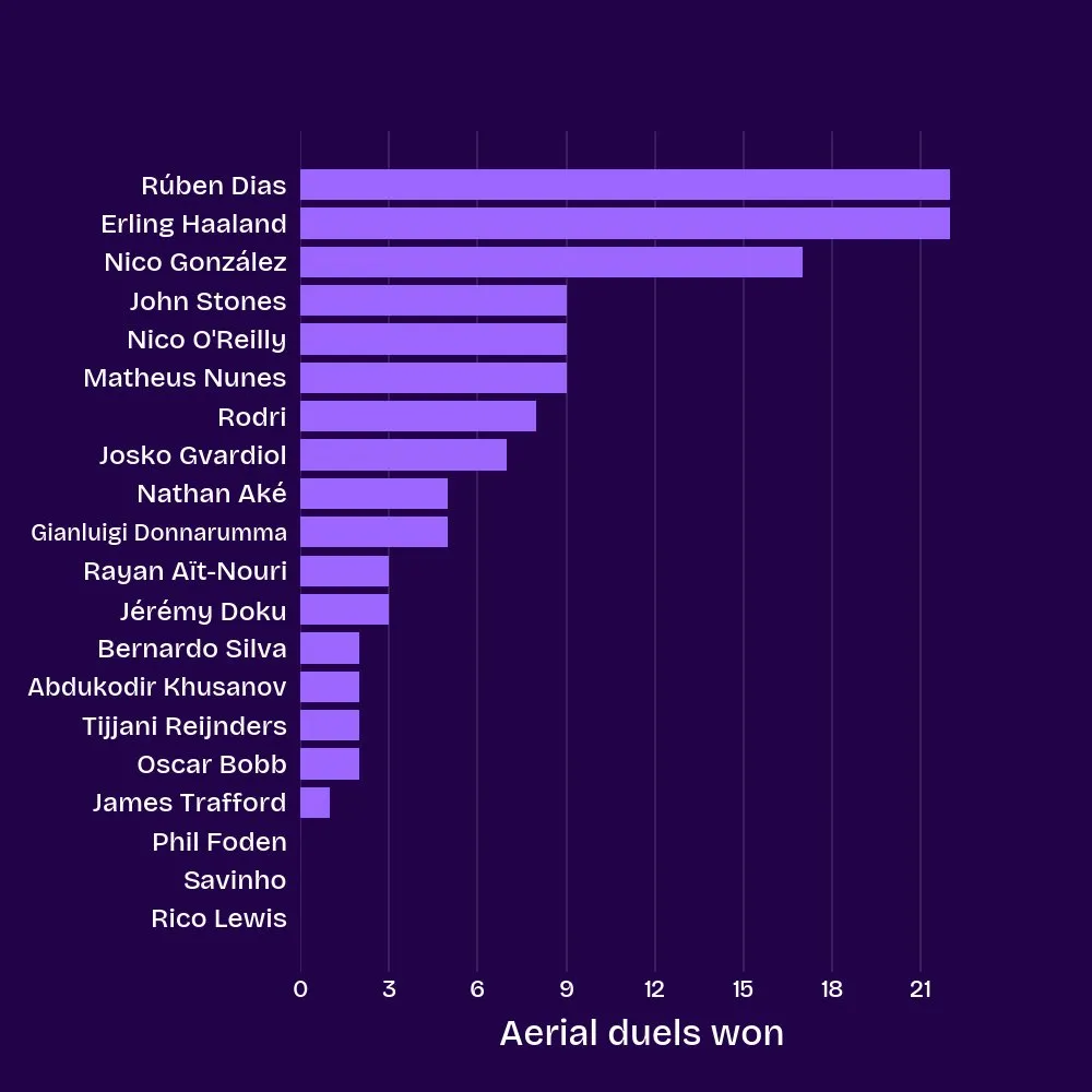 虎撲10月31日訊 英超休賽期,數(shù)據(jù)網(wǎng)站squawka統(tǒng)計(jì)本賽季曼城球員隊(duì)內(nèi)空中對(duì)抗成功排行榜。內(nèi)英