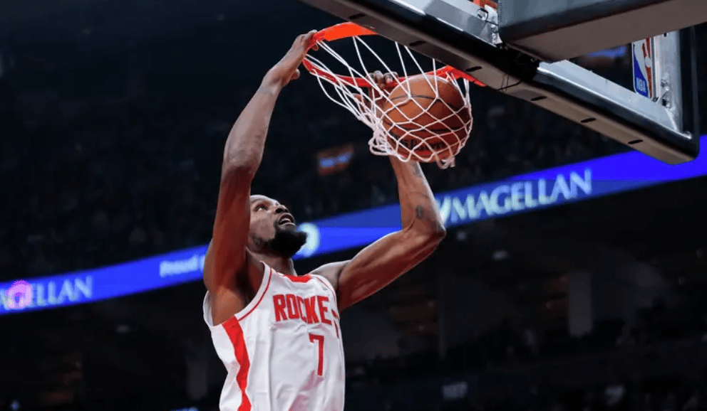 本場(chǎng)比賽,火箭球員凱文-杜蘭特出戰(zhàn)36分鐘,19投11中,其中三分球8投4中,罰球8投5中,得到31分5籃板1助攻3封蓋。
