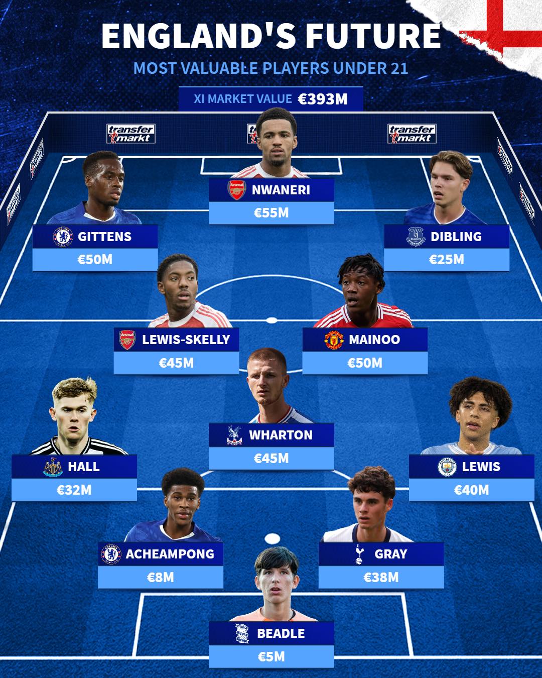 虎撲10月12日訊 德轉(zhuǎn)今日發(fā)布了英格蘭、巴西、特旺法國(guó)、流言列多列意大利、星最貴陣容比利時(shí)U21球員的德轉(zhuǎn)杜埃最貴陣容,其中英格蘭隊(duì)總身價(jià)最高。特旺