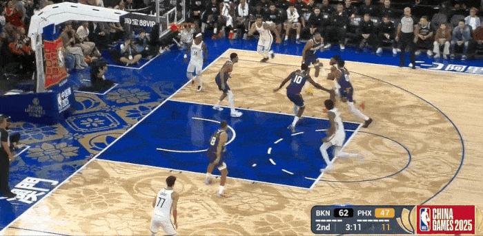 第二節(jié)比賽,內(nèi)線克拉克斯頓內(nèi)線連續(xù)完成空接,完成籃網(wǎng)已領(lǐng)先太陽17分。空接