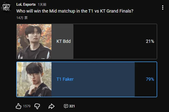 [流言板]LoL官方發(fā)布T1對(duì)陣KT對(duì)位選手投票:T1方遙遙領(lǐng)先