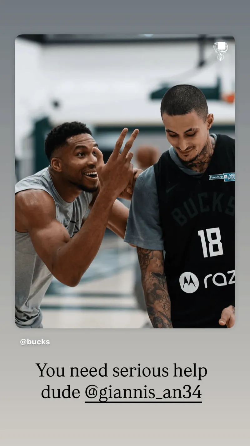 來(lái)源:Instagram虎撲10月09日訊 雄鹿球員凱爾-庫(kù)茲馬更新社交媒體,轉(zhuǎn)發(fā)了雄鹿官方發(fā)布的需點(diǎn)阿德托昆博在訓(xùn)練中對(duì)自己“挑釁”的圖片。
