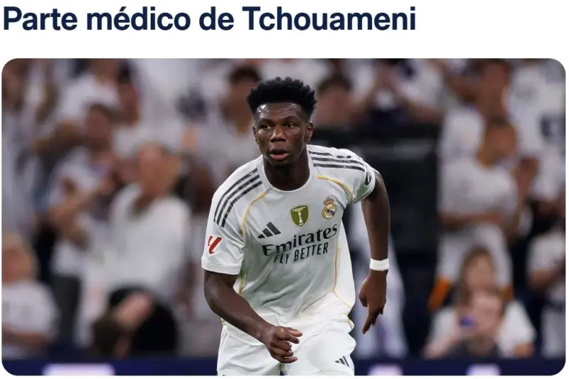 官網(wǎng):楚阿梅尼左腿半腱肌受傷,官網(wǎng)將缺席約 3 周。梅尼