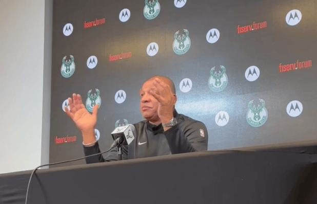 賽后,雄鹿主教練道格-里弗斯接受了記者采訪,談到當(dāng)家球星揚尼斯-阿德托昆博。