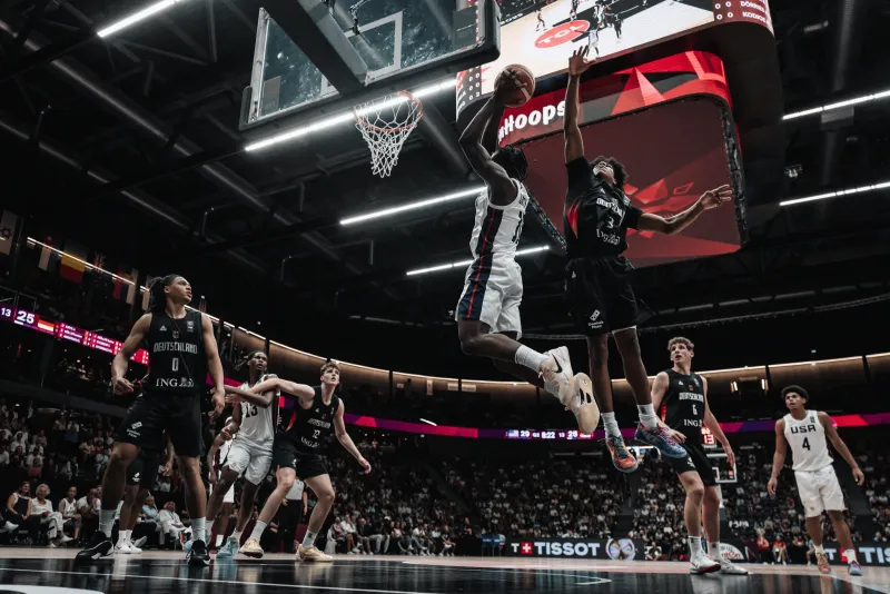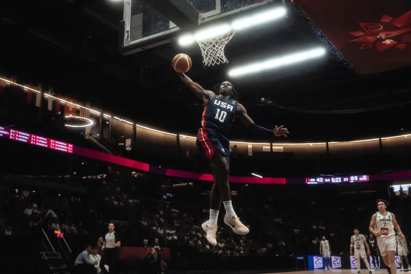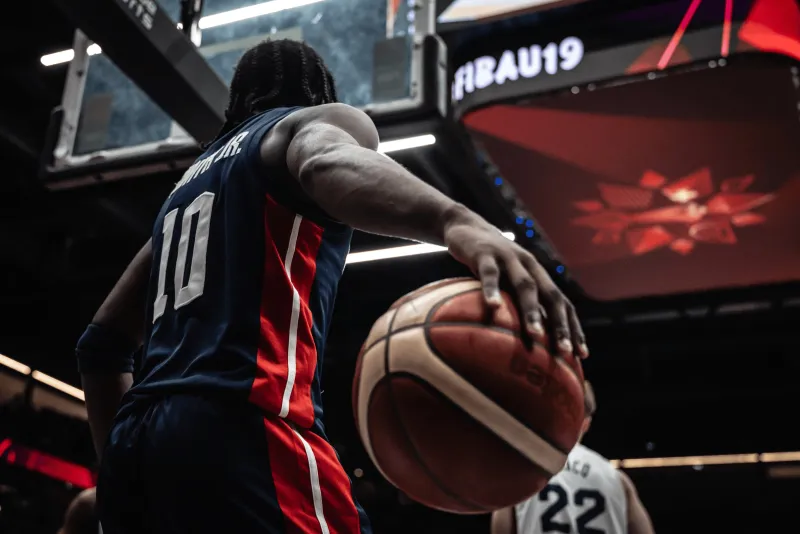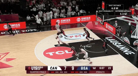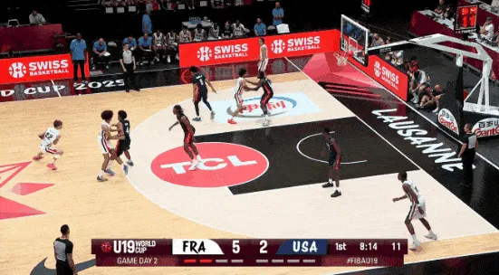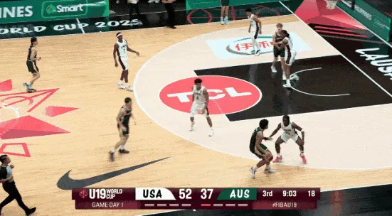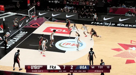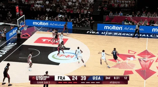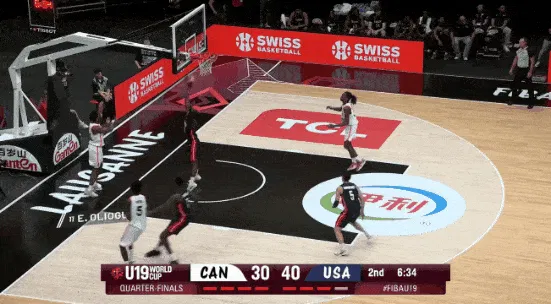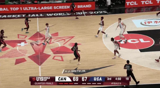 投射或許是史密斯的短板,他愿意投三分,但命中率需要提升,穩(wěn)定性也不夠好。他的投籃動作不算固定,且容易下意識地進(jìn)攻closeout。在去年的FIBA U17, 他場均三分2.6投只有0.7中;在今年的U19中,史密斯的三分還是取得了進(jìn)步,雖然場均依然只有0.7中,不過得益于外線出手?jǐn)?shù)下降到了2.0次,他的三分效率從27.8%飛升至35.7%。對于一個矮個雙能衛(wèi),甚至某種程度上是迷你前鋒的球員來講,缺乏穩(wěn)定投籃威脅在當(dāng)代NBA是非常致命的。而他在60%-70%附近徘徊的命中率證明,喬丹-史密斯的投射前景不那么出色。