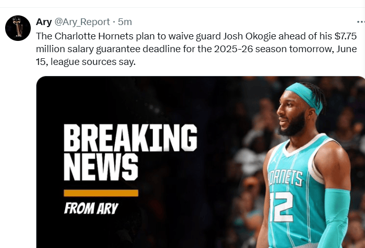 虎撲07月15日訊 根據(jù)美國記者Ary透露,夏洛特黃蜂計劃裁掉后衛(wèi)約什-奧科吉,計劃以避免其2025-26賽季775萬美元的裁掉薪資在明天(7月15日)轉(zhuǎn)為保障合同。