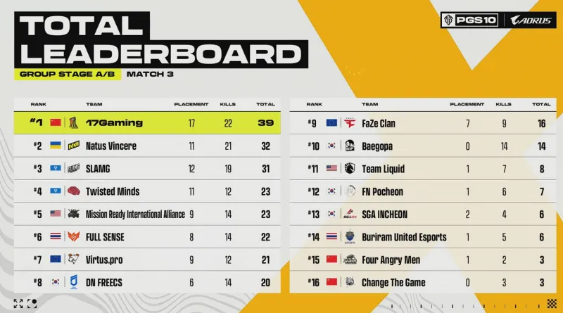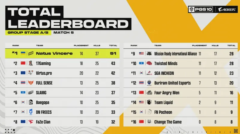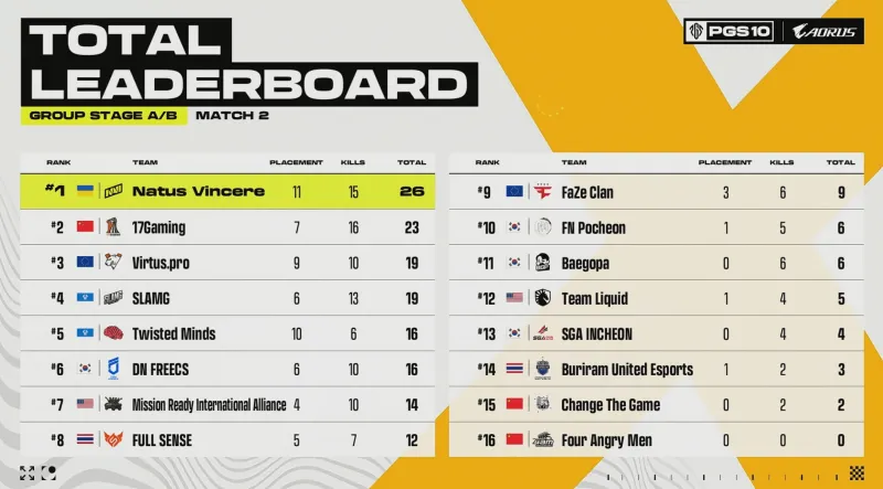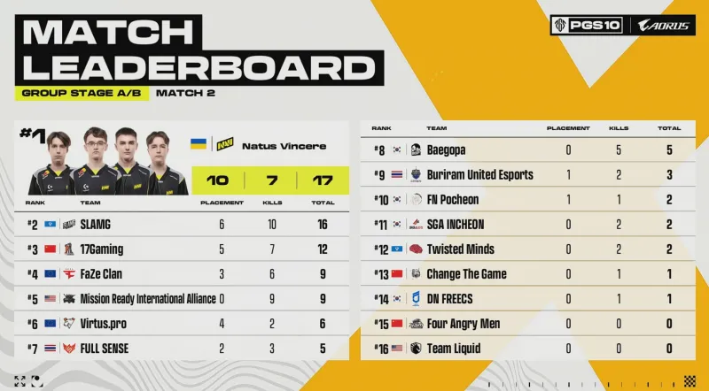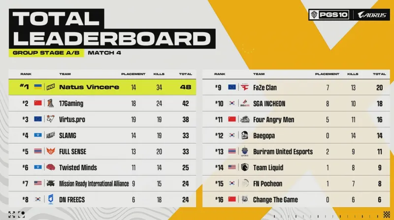 [賽后]PGS10小組賽D1:NaVi領(lǐng)跑,17第5,4AM、CTG分列14、15