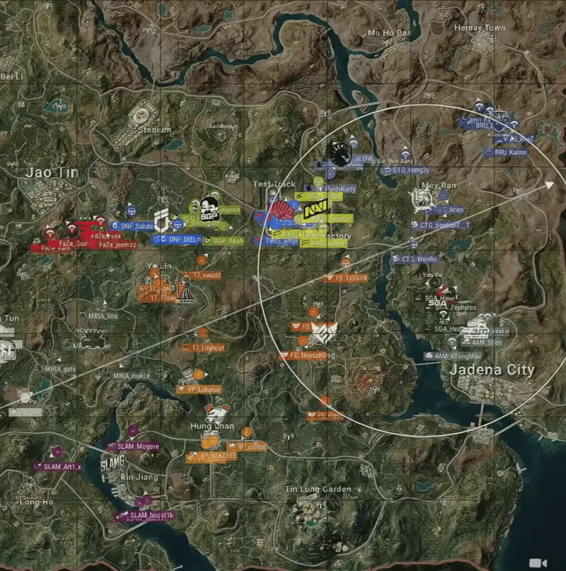階段8刷新后,DNF在圈外被卡死,TWIS全員在圈輕松完成吃雞。