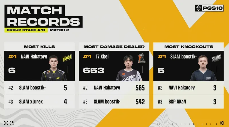 階段7,NAVI-Hakatory1串4打掉17滿編,隨后打掉SLAM山頂?shù)年?duì)員,盡管有一人下山清理SLAM獨(dú)狼時(shí)被淘汰,但最終3打1輕松吃雞。