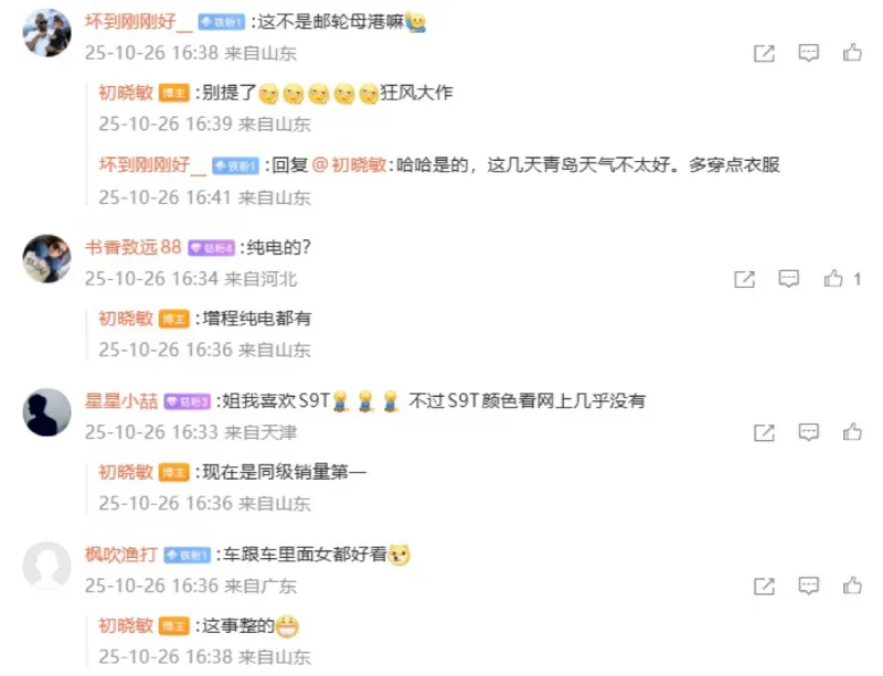 有用戶詢問(wèn)新車是否為純電動(dòng)力,博主回復(fù)稱:“增程純電都有。板華”