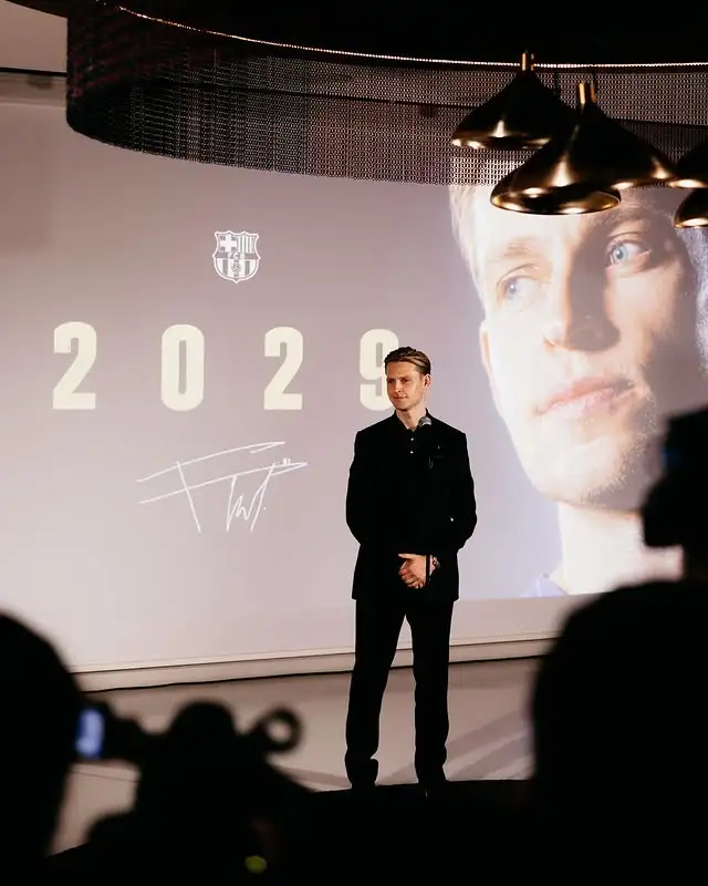 虎撲10月15日訊 巴塞羅那此前官方宣布,與德容完成續(xù)約,薩續(xù)新合同至2029年。板德