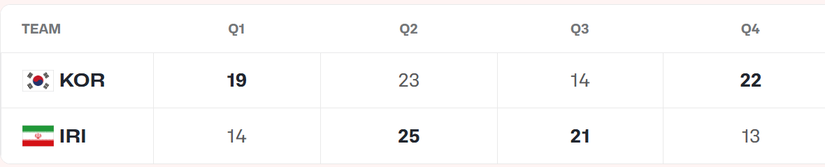 韓國(guó)男籃:樸泰俊24分5板8助,樸范淵14分6板,泰俊李勝賢12分4板4助