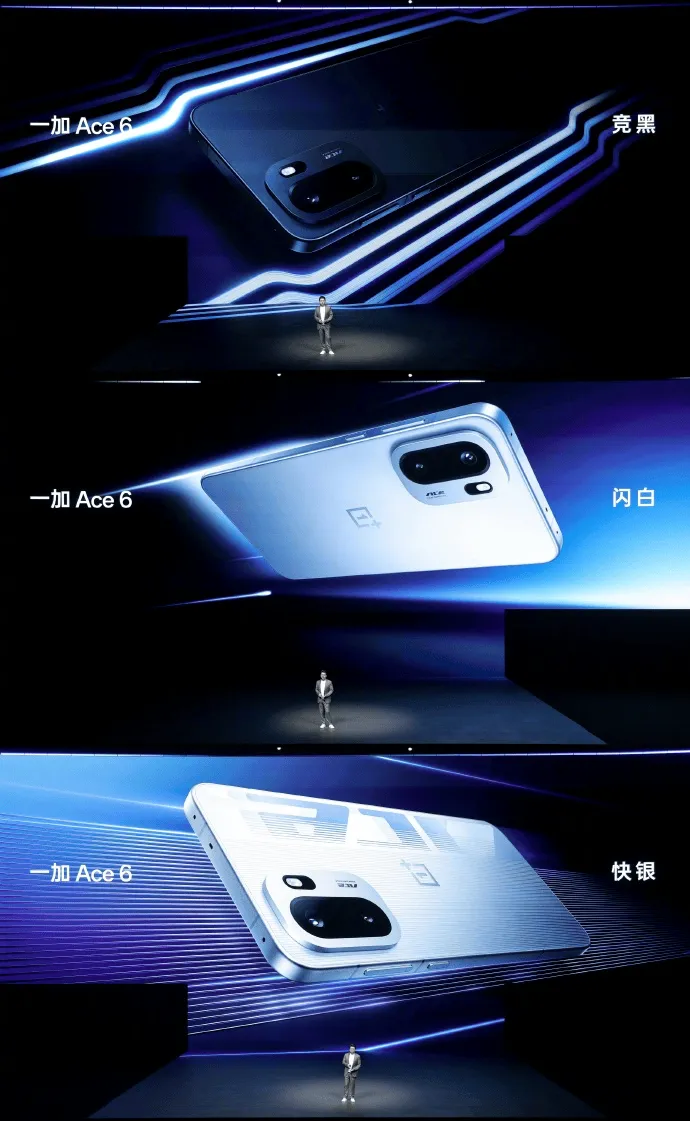 外觀方面:一加 Ace 6 延續(xù)了家族式設(shè)計(jì)語言,帶來全新配色競黑、閃白與快銀,機(jī)身采用旗艦級(jí)金屬中框與金屬魔方 Deco 元素。背板材質(zhì)為同檔唯一的「微漸變絲綢玻璃」,呈現(xiàn)出細(xì)膩柔滑的光影流動(dòng)效果。