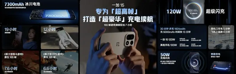 續(xù)航方面:一加 15 搭載 7300mAh「冰川電池」,支持 120W 超級(jí)閃充與 50W 無線閃充的旗艦級(jí)組合,成為同檔唯一配備雙閃充方案的機(jī)型。官方數(shù)據(jù)顯示,僅 30 分鐘即可額外多充 1604mAh,充滿 5000mAh 電量速度比上一代快 13 分鐘。