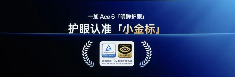 屏幕方面:一加 Ace 6 搭載同檔唯一的 165Hz 超高刷新率直屏,并具備旗艦同款「太陽顯示」技術(shù),在強(qiáng)光下依然清晰通透。屏幕還配備全新一代「明眸護(hù)眼」方案,獲得“小金標(biāo)”護(hù)眼認(rèn)證,長時(shí)間使用更舒適。