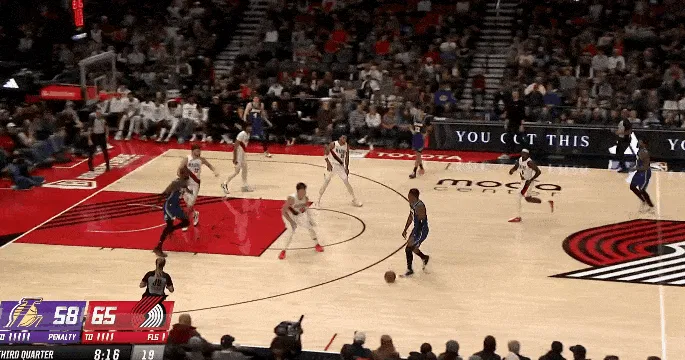 NBA常規(guī)賽,湖人對陣開拓者的手感絲滑比賽正在進行中。