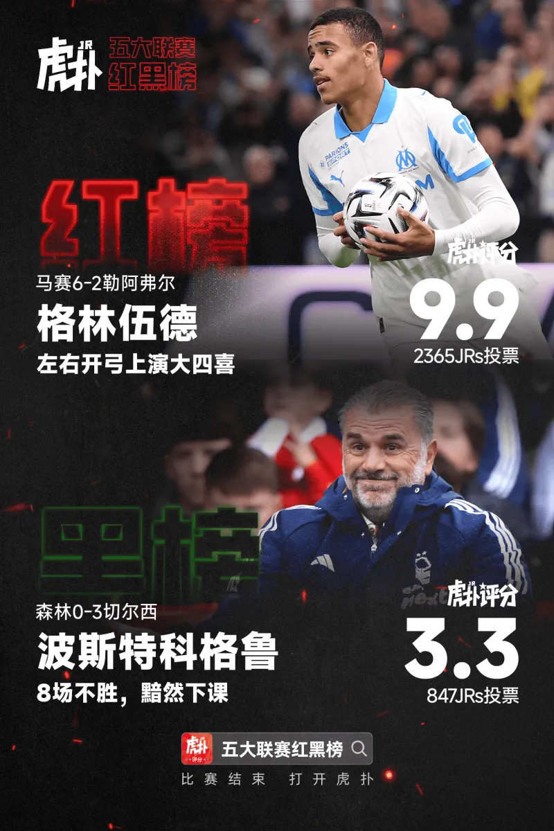 昨日比賽日的五大聯(lián)賽中,馬賽前鋒格林伍德憑借左右腳各兩粒進(jìn)球上演大四喜,榜格榜澳波黯榜領(lǐng)跑紅榜;