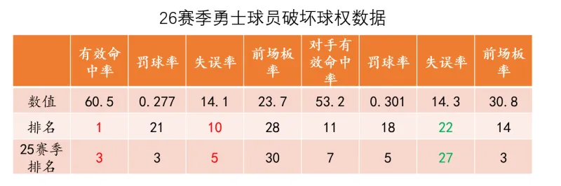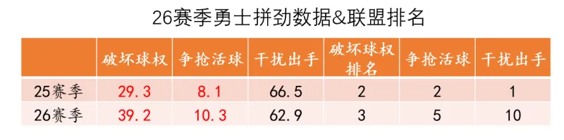本賽季至今勇士依然是聯(lián)盟里最好的兼顧防守端侵略性和不失位的球隊,小樣本下它們破壞球權(quán)和爭搶活球的能力比上賽季還要強上不少。等樣本數(shù)逐漸累積起來后,我們應(yīng)該更能看到勇士在防守拼勁上的優(yōu)勢所在。