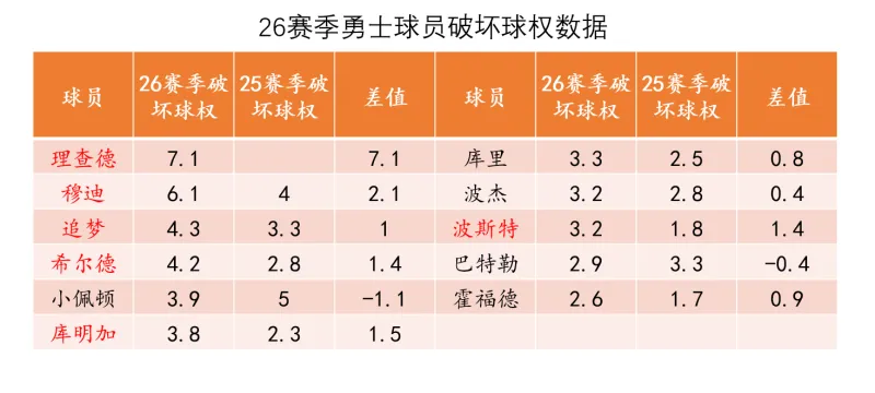 上表是本賽季至今勇士球員每36分鐘破壞球權(quán)數(shù)據(jù)及與上賽季的比較,還記得上賽季勇士剛引入希爾德和梅爾頓時我曾經(jīng)暢想過一套四大名捕(梅爾頓、希爾德、穆迪、追夢)+庫里的陣容,這四大名捕各個都是臂展怪,臂展比身高要多十幾厘米,結(jié)果因為梅爾頓的報銷最終未能實現(xiàn)。但本賽季隨著又一個臂展怪理查德的加入,理查德、穆迪、追夢和希爾德四個臂展怪成為了球隊破壞球權(quán)最強的四人,在宇宙勇時期后勇士似乎再次擁有了新版的四大名捕陣容了!