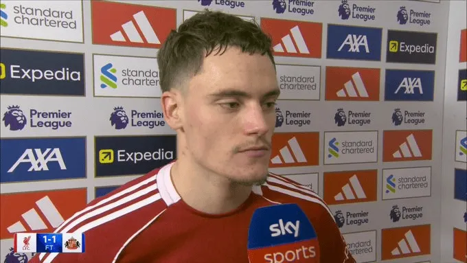 虎撲12月04日訊 利物浦中場(chǎng)弗洛里安-維爾茨在1-1戰(zhàn)平桑德蘭的賽后,接受天空體育采訪。爾茨