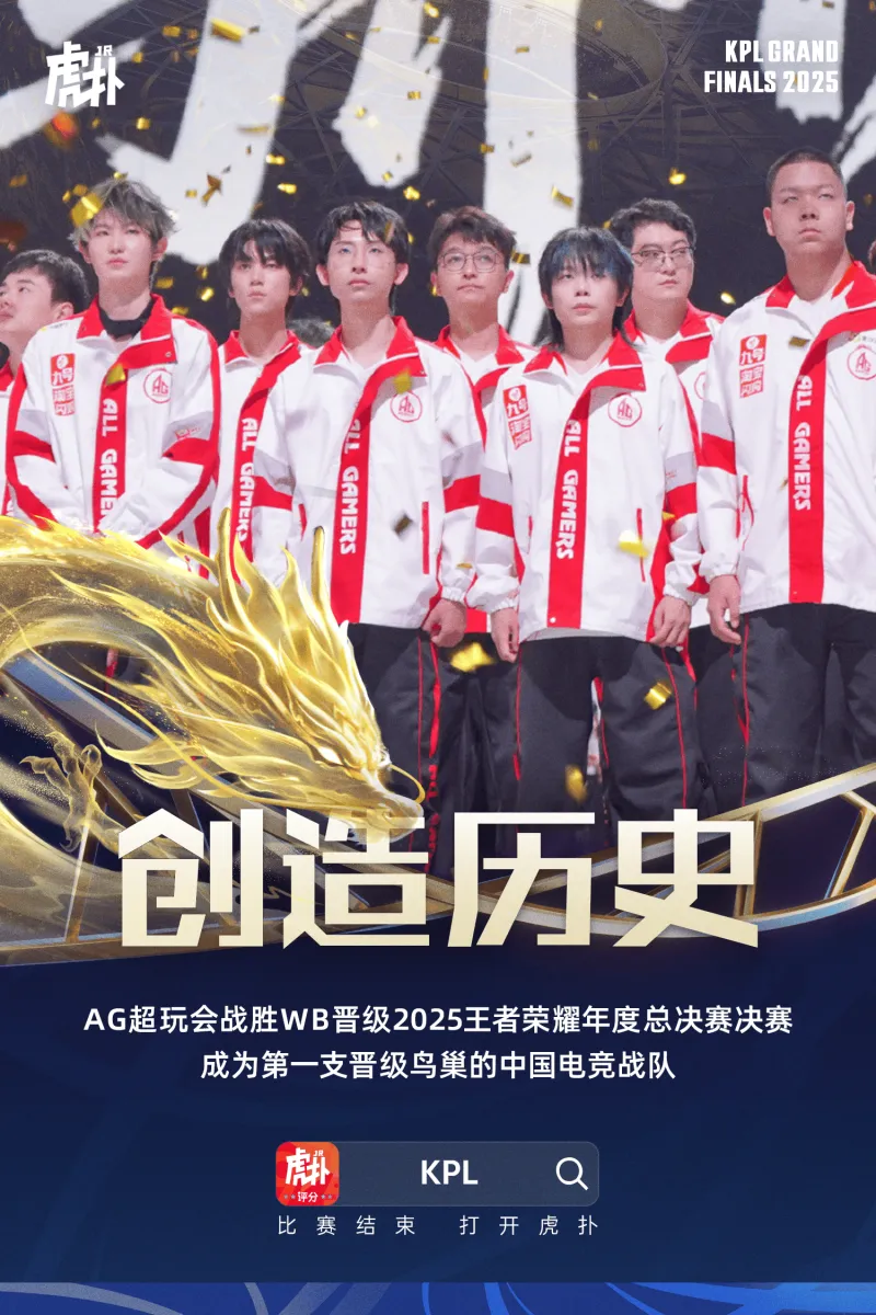 成都AG超玩會 4-1 戰(zhàn)勝北京WB晉級2025王者榮耀年度總決賽決賽,都A第支的中隊成為第一支晉級鳥巢的超成中國電競戰(zhàn)隊。