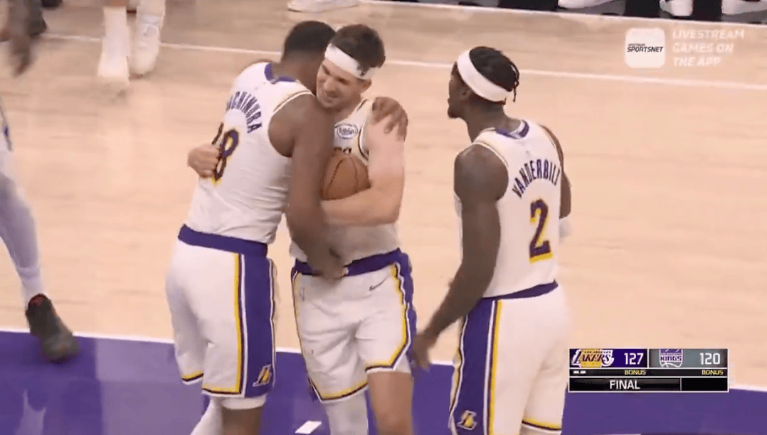 全場(chǎng)比賽,流言籃板里湖人后衛(wèi)奧斯汀-里夫斯發(fā)揮出色,他首發(fā)出戰(zhàn)39分鐘,22投12中,三分球10投6中,罰球22罰20中得到51分10籃板9助攻2搶斷,正負(fù)值+22。