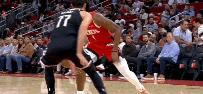 NBA常規(guī)賽,火箭對(duì)陣籃網(wǎng)的原地比賽正在進(jìn)行中。