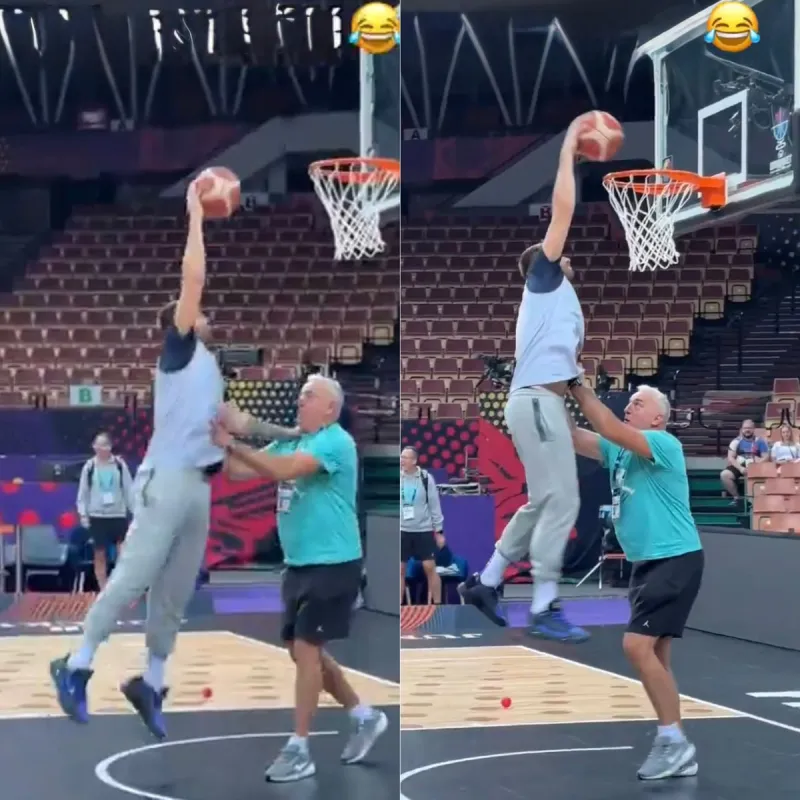 虎撲09月06日訊 NBA Memes更新X,曬出一張湖人球員盧卡-東契奇隔扣自己父親的體曬照片與球迷分享。